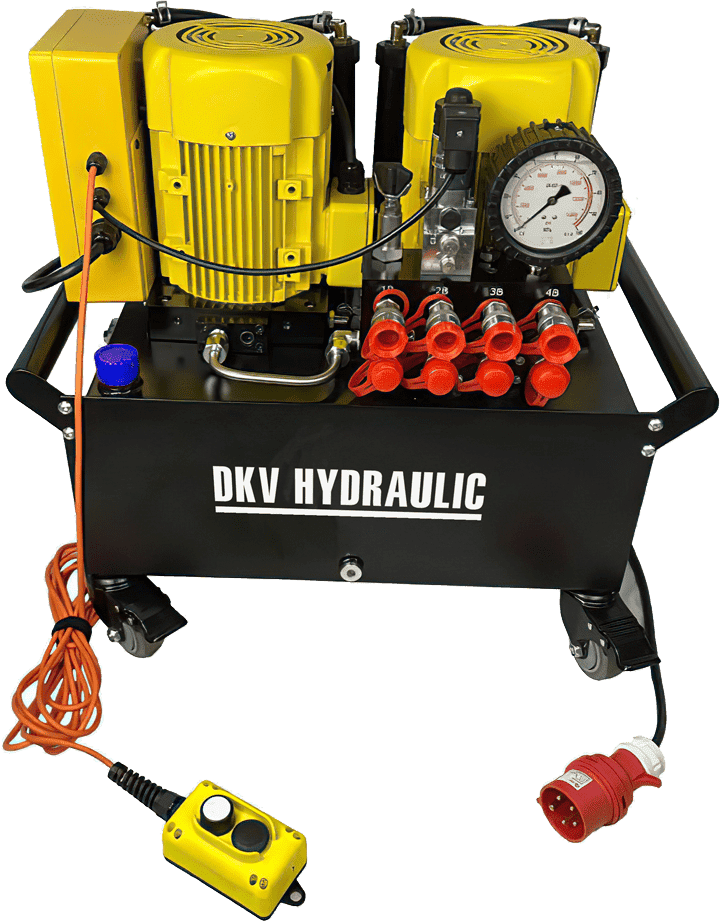 - Bơm điện thủy lực DHE-7040xxx, Electric hydraulic pump DHE-7040xxx: là loại bơm điện thủy lực cỡ lớn, thuộc dòng sản phẩm DHE-7040 dung tích dầu hữu ích 40 lít, áp hoạt động < 700 bar (70 MPa), chuyên dùng cho kích thủy lực, tools thủy lực trong công nghiệp.
