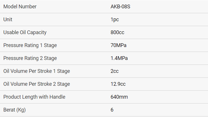 - Bơm thủy lực Eagle AKB-08S, bơm tay thủy lực Eagle AKB-08S, Eagle hydraulic pump AKB-08S là loại bơm tay thủy lực 1 chiều, thân vỏ thép, có dung tích chứa dầu 0.8 lít, áp hoạt động < 700 bar (70 MPa), chuyên dùng cho kích và tools thủy lực.