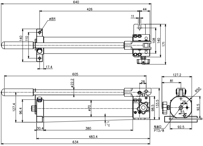 - Lưu lượng đẩy dầu đạt: 2 ml/hành trình (tại 700 bar), với đầu ren chờ kết nối tiêu chuẩn Rc3/8, cho phép đấu nối nhanh với kích và tools thủy lực thông qua ống dây thủy lực, phụ kiện.