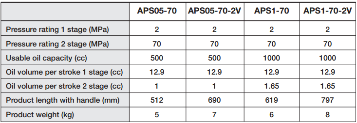 - Bơm thủy lực Eagle APS1-70, bơm tay thủy lực Eagle APS1-70, Eagle hydraulic pumpAPS1-70: là loại bơm tay thủy lực 1 chiều, thân vỏ thép, có dung tích chứa dầu 1 lít, áp hoạt động < 700 bar (70 MPa), chuyên dùng cho kích và tools thủy lực.