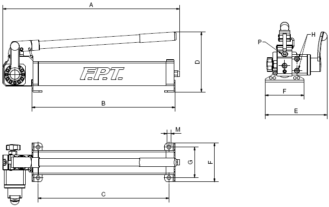 - Bơm tay thủy lực FPT PDSA-40-DE, FPT hydraulic hand pump PDSA-40-DE: là loại bơm tay thủy lực 2 chiều, thân vỏ hợp kim nhôm, có dung tích chứa dầu: 1.8 lít, dung tích dầu hữu dụng: 1.6 lít, áp hoạt động < 700 bar (70 MPa), chuyên dùng cho kích và tools thủy lực 2 chiều.
