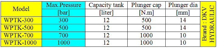 - Bơm thử áp lực nước WPTK-700 có trọng lượng: 13 kg, là sản phẩm OEM (đặt hàng gia công chế tạo) tại Busan - Hàn Quốc của nhãn hàng DKV HYDRAULIC thuộc DKV VIET NAM CO.,LTD. Made in Korea (CO Phòng thương mại Hàn Quốc). Nhập khẩu, phân phối và service tại Việt nam.