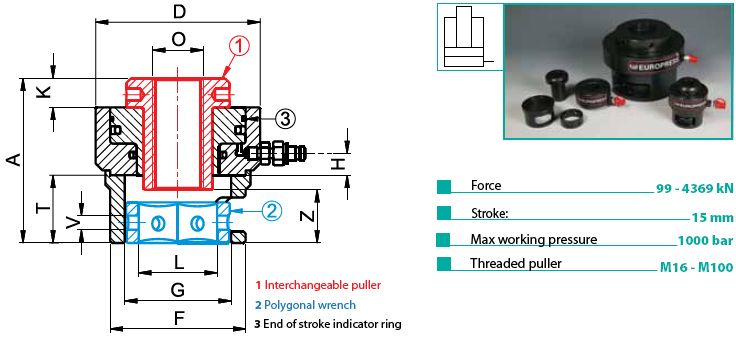 CĂNG BULONG THỦY LỰC EUROPRESS UTH1624M16 | EUROPRESS HYDRAULIC BOLT TENSIONER UTH1624M16 | 99 kN | M16