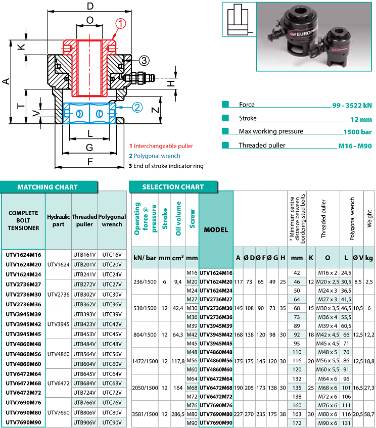 CĂNG BULONG THỦY LỰC EUROPRESS UTV3945M42 | EUROPRESS HYDRAULIC BOLT TENSIONER UTV3945M42 | 804 kN | M42