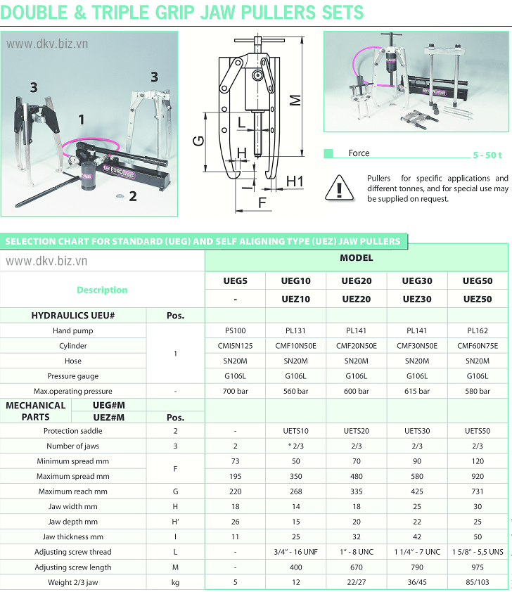 - Bộ cảo thủy lực Europress UEG30, Europress hydraulic puller sets UEG30: là loại cảo sử dụng bơm tay thủy lực với sức móc đẩy max: 30 tấn, độ mở max: 580 mm, chuyên dùng để tháo/lắp vòng bi, bạc đạn, puly, bánh đà trong công nghiệp.