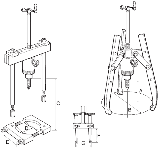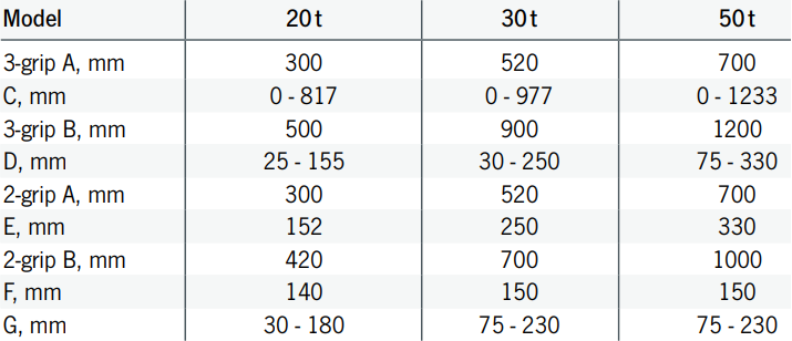 Toàn bộ dùng chung kích thủy lực rỗng tâm 1 chiều (YCS-57/70: 57 tấn, 70 mm, Ø 42 mm ~ Osaka EC50S7), bơm tay thủy lực (HPH-2/0,7A: 0.7 lít, 700 bar, 2 cấp tốc độ ~ Osaka TWA-0.7), ống dây đi kèm HHC-20, đồng hồ đi kèm (GYA-163), kết hợp với trục ren chính của cảo, dài 975 mm.
