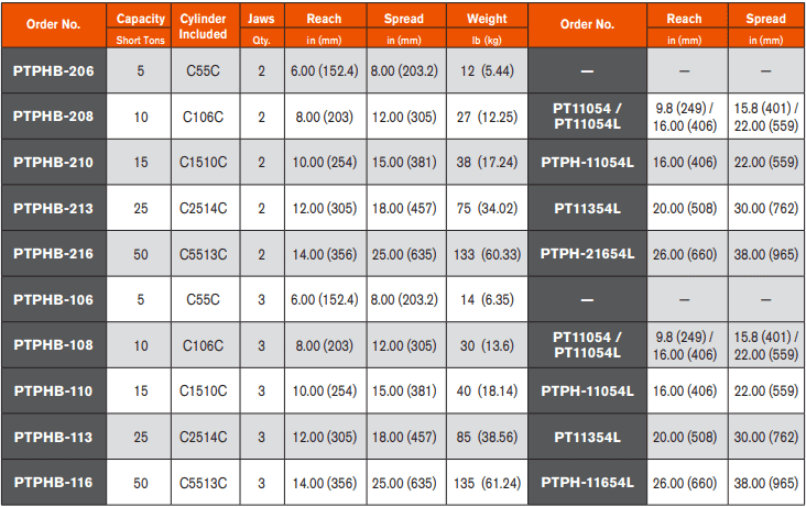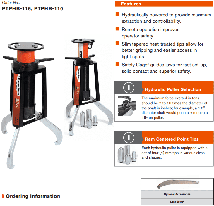 CẢO THỦY LỰC POWER TEAM PTPHB-208 | POWER TEAM HYDRAULIC PULLER PTPHB-208 | 10 tấn | 305 mm