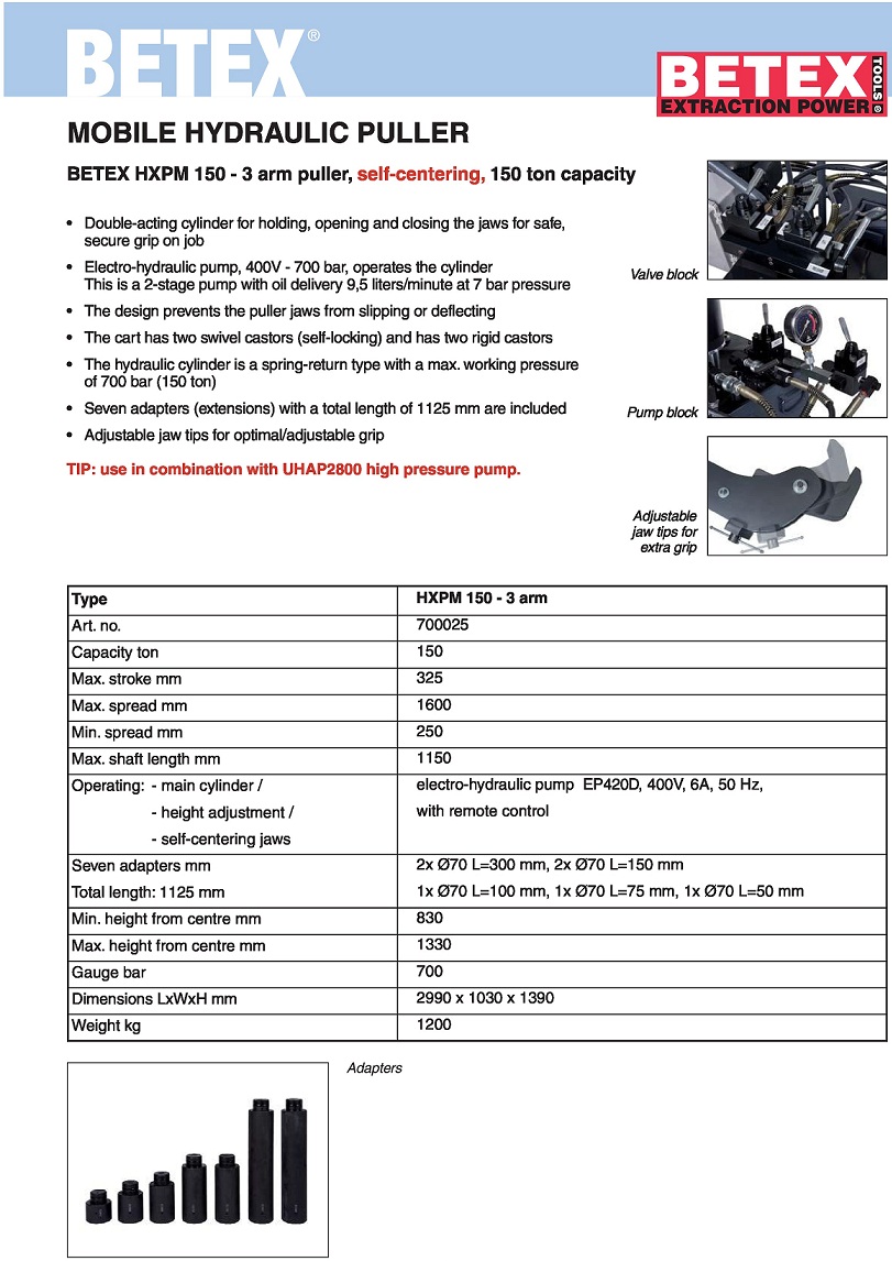XE CẢO THỦY LỰC BETEX 150 tấn - BETEX MOBILE HYDRAULIC PULLER 150 tons.