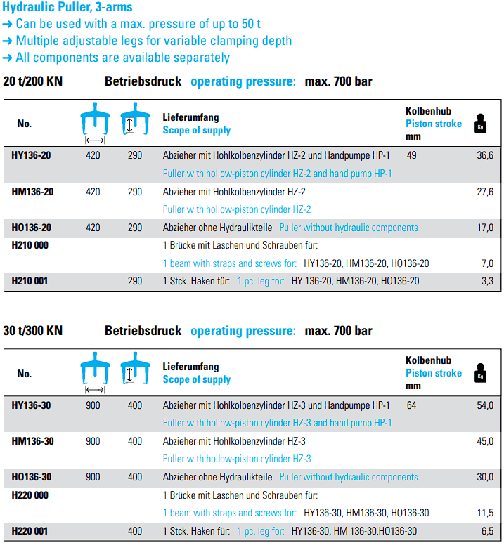 - Cảo thủy lực Nexus HM136-30, Nexus hydraulic puller HM136-30 là dòng cảo thủy lực 3 chấu, tự định tâm, có lực đẩy/kéo max: 30 tấn, hành trình xy lanh: 64 mm, độ mở max: 900 mm, chiều dài chân cảo: 400 mm. Đây là loại cảo thủy lực dời bơm có áp suất hoạt động <700 bar (10.000 psi), kết nối với bơm tay thủy lực, bơm điện thủy lực thông qua ống dây thủy lực, rất thuận tiện cho hoạt động kéo/đẩy từ bắt kỳ hướng nào, tháo lắp nhanh chóng.