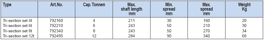 CẢO THỦY LỰC BETEX TRI-SECTION SET 4T | BETEX HYDRAULIC PULLER TRI-SECTION SET 4T | 4 tấn | 160 mm