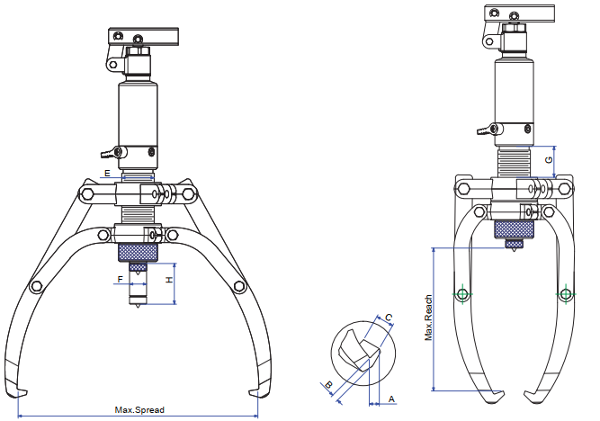 - Cảo thủy lực Betex HSP 63, Betex hydraulic puller HSP 63 là dòng cảo thủy lực 3 chấu, liền bơm có sức móc max: 6 tấn, hành trình: 70 mm, Chiều cao ty cảo max.reach: 230 mm, độ mở max: 390 mm.