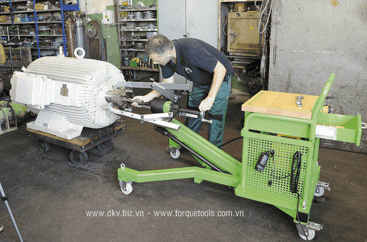 - Xe đẩy đỡ cảo và chứa bơm thủy lực, có trang bị thêm 1 xilanh thủy lực giúp cố định vị trí tại điểm cần tháo lắp.