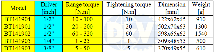 Cờ lê lực Brilliant BT141905, cờ lê siết lực Brilliant BT141905, Brilliant torque wrench BT141905 có các đặc điểm: