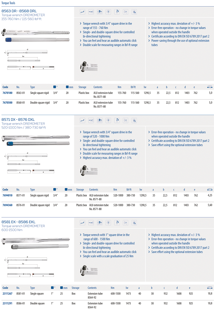 - Ngoài cung cấp cờ lê lực Gedore 8576-01, chúng tôi còn cung cấp và có sẵn cờ lê lực có thông số tương đương chất lượng cao của: Hazet, Stahlwille, Norbar, CDI..hoặc giá rẻ của DKV TORC (nhãn hàng trực thuộc DKV VIET NAM, OEM | China), đáp ứng nhu cầu cần sử dụng ngay của khách hàng.