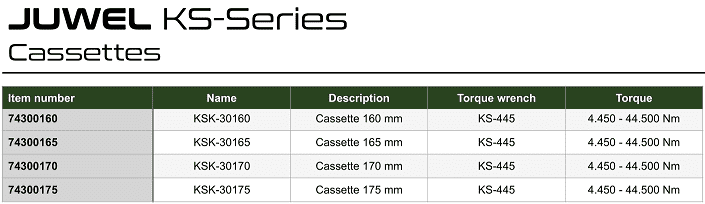 - Cờ lê thủy lực Juwel KS-445, Juwel low hydraulic torque wrench KS-445: là loại cờ lê thủy lực đầu tròng, chuyên dùng để siết lực chính xác các loại bulong lục giác: 160 - 175 mm, với dải siết lực: 4.450 - 44.500 N.m, trong công nghiệp. Cờ lê thủy lực Juwel KS-445 hoạt động ở áp < 700 bar, sai số chế tạo: +/- 3%.