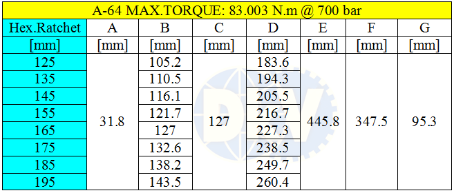 CỜ LÊ THỦY LỰC NORWOLF X-A64 | NORWOLF LOW HYDRAULIC TORQUE WRENCH X-A64 | 83.003 N.m | 195 mm