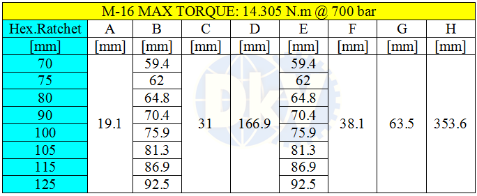 CỜ LÊ THỦY LỰC NORWOLF X-M16 | NORWOLF LOW HYDRAULIC TORQUE WRENCH X-M16 | 14.305 N.m | 125 mm