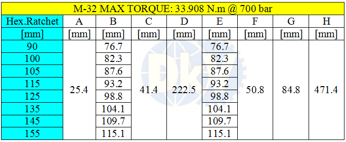 CỜ LÊ THỦY LỰC NORWOLF X-M32 | NORWOLF LOW HYDRAULIC TORQUE WRENCH X-M32 | 33.908 N.m | 155 mm