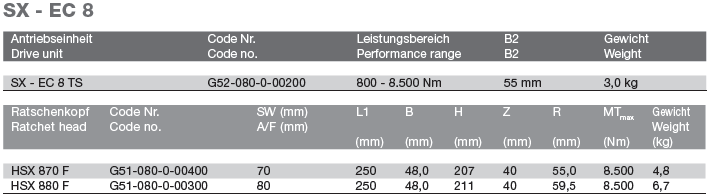 CỜ LÊ THỦY LỰC PLARAD SX-EC 8 TS | PLARAD HYDRAULIC TORQUE WRENCH SX-EC 8 TS | 800 - 8.500 N.m | 70 - 80 mm