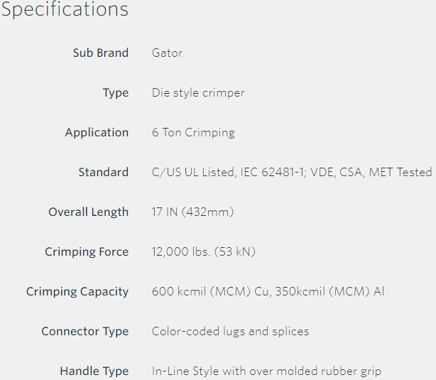 Thông tin sản phẩm niêm yết chính thức tại hãng Greenlee .