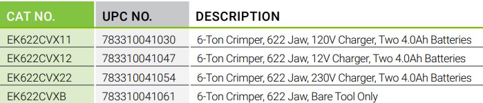 MÁY ÉP CỐT THỦY LỰC GREENLEE EK622CVX22 | GREENLEE CORDLESS HYDRAULIC CRIMPERS EK622CVX22 | 6 tấn | Ø 300 mm2