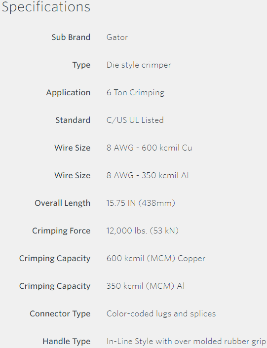 Thông tin sản phẩm niêm yết chính thức tại hãng Greenlee .