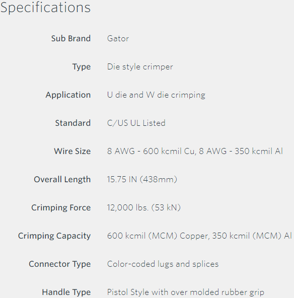 Thông tin sản phẩm niêm yết chính thức tại hãng Greenlee .