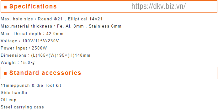 - Súng điện đột lỗ Diamond EP-20S, Diamond electric puncher EP-20S: là loại súng đột lỗ kim loại, có khả năng đột lỗ tròn size: Ø 21 mm, chiều sâu họng max: 42 mm, chuyên được sử dụng để tạo lỗ tròn, lỗ ovan hoặc lỗ hình vuông trên vật liệu sắt thép có độ cứng trung bình, đặc biệt phù hợp để đột lỗ trên thép dầm, thép tấm vv...