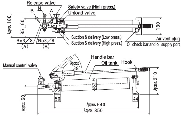 - Lưu lượng đẩy dầu đạt: 2 ml/hành trình (tại 720 bar), với đầu ren chờ kết nối tiêu chuẩn Rc3/8, cho phép đấu nối nhanh với kích và tools thủy lực thông qua ống dây thủy lực, phụ kiện.