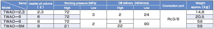 - Bơm thủy lực Osaka TWAD-2.3, bơm tay thủy lực Osaka TWAD-2.3, Osaka hydraulic pump TWAD-2.3 là loại bơm tay thủy lực 2 chiều, thân vỏ thép, có dung tích chứa dầu 2.3 lít, áp hoạt động < 720 bar (72 MPa), chuyên dùng cho kích và tools thủy lực.
