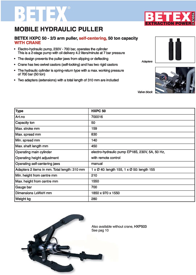 XE CẢO THỦY LỰC BETEX (50 tấn, 159 mm, 3 chấu)