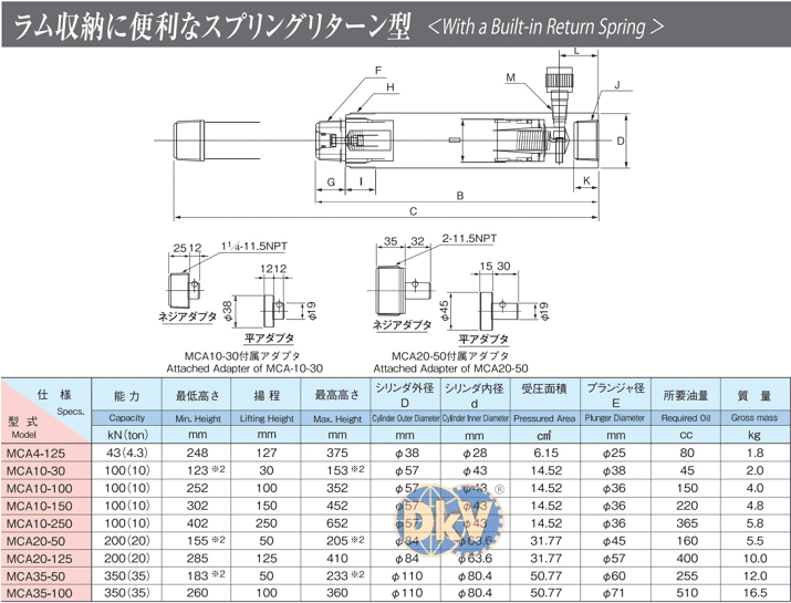 - Kích thủy lực 1 chiều Masada MCA10-150 có trọng lượng: 4.8 kg.