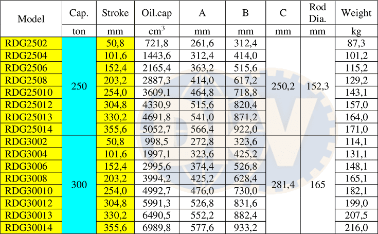 - Kích thủy lực Power Team RDG3002, kích thủy lực hai chiều Power Team RDG3002, Power Team double acting hydraulic jack RDG3002: là loại kích thủy lực 2 chiều, vỏ thép, loại lớn có sức nâng max: 300 tấn, hành trình max: 50.8 mm, áp họat động < 700 bar (10.000 psi).