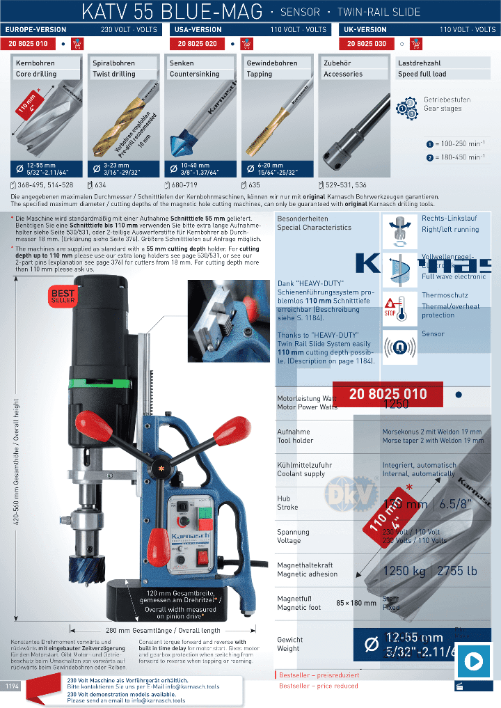 - Máy khoan từ Karnasch KATV 55 SILVER-MAG được sản xuất tại Karnasch Professional Tools GmbH - Heddesheim - Đức. Made in Germany.