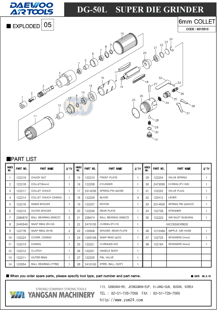 - Máy mài lỗ khí nén Daewoo DG-50L được sản xuất bởi nhà sản xuất Yangsan Machinery - Busan - Hàn Quốc. Made in Korea (CO Phòng thương mại Hàn Quốc).