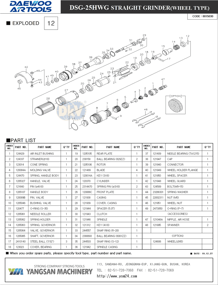 - Máy mài lỗ khí nén Daewoo DSG-25HWG được sản xuất bởi nhà sản xuất Yangsan Machinery - Busan - Hàn Quốc. Made in Korea (CO Phòng thương mại Hàn Quốc).
