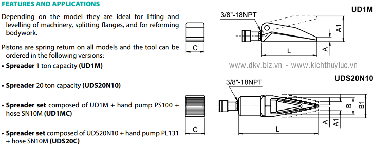 TÁCH MẶT BÍCH THUỶ LỰC EUROPRESS UDS20N10 | EUROPRESS HYDRAULIC SPREADERS UDS20N10 | 17 tấn | 64 mm