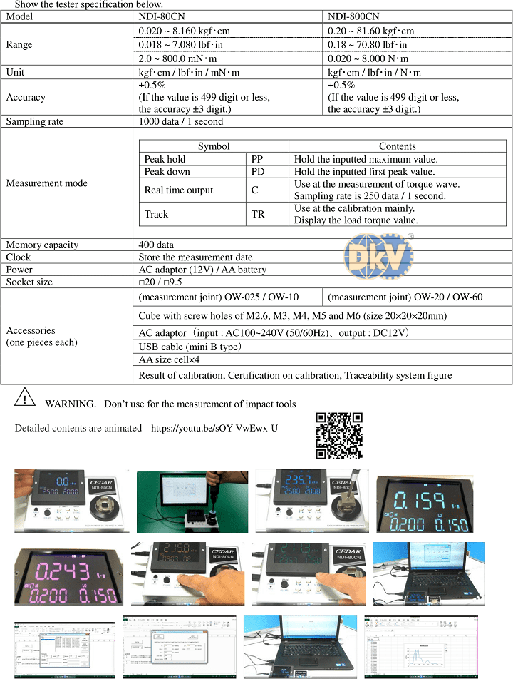 - Thiết bị đo test lực Cedar NDI-80CN, Cedar torque tester NDI-80CN: chuyên dùng để đo, test, hiệu chuẩn lực siết tô vít lực điện, súng siết lực cỡ trung bình. Thiết bị đo test lực Cedar NDI-80CN có dải đo: 2 - 800 N.m | 0.02 - 8.16 kgf.cm | 0.018 - 7.08 Ibf.in, sai số: +/- 0.5 % (FS).