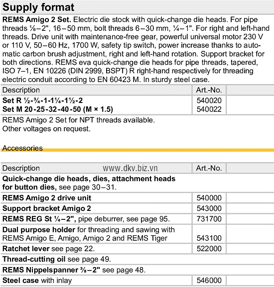• Cắt ống Rems 113000, Rems pipe cutters 113000 có đường kính: Ø 10 - 60 mm, sử dụng bánh (đĩa cắt) chuyên dùng để cắt các loại ống trong công nghiệp.