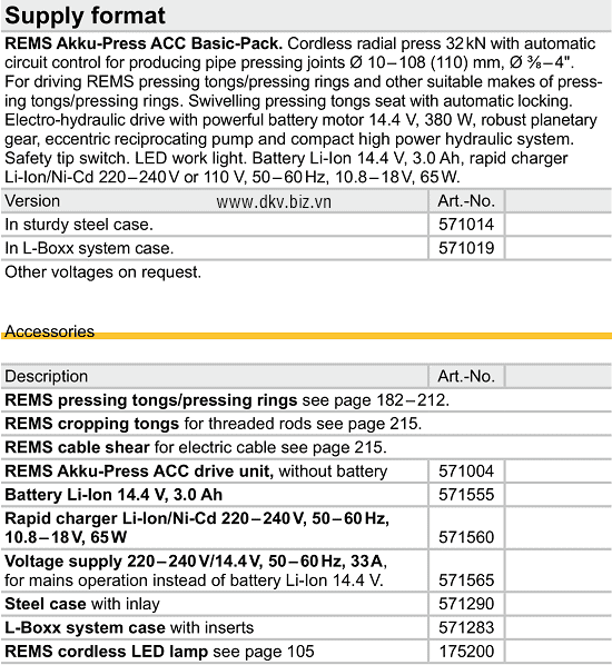 • Hãng sản xuất: Rems/Germany.