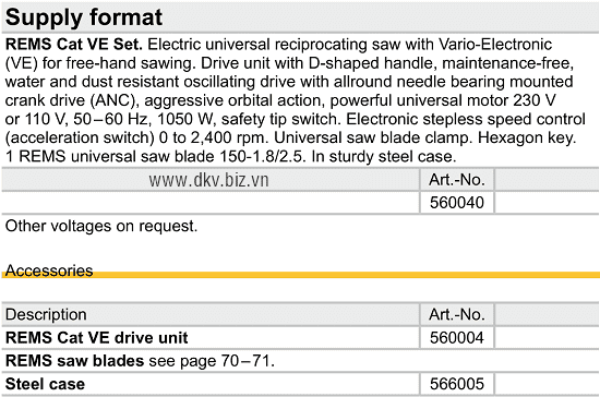 • Cắt ống Rems 113000, Rems pipe cutters 113000 có đường kính: Ø 10 - 60 mm, sử dụng bánh (đĩa cắt) chuyên dùng để cắt các loại ống trong công nghiệp.
