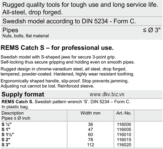 • Cắt ống Rems 113000 được chế tạo bằng thép dụng cụ, có độ bền cao, đặc biệt phần lưỡi cắt được gia cường để hạn chế mài mòn.