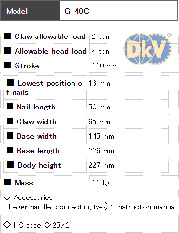 - Ngoài cung cấp kích móc thủy lực Eagle G-40C và các sản phẩm tiêu chuẩn luôn có sẵn, chúng tôi còn cung cấp các kích móc thủy lực chất lượng cao của Jung | Germany, Osaka Jack | Japan, Masada | Japan và hàng giá rẻ hơn của Tonners | Korea, China để thỏa mãn sự lựa chọn thêm của khách hàng, phù hợp với tiêu chí của khách hàng đặt ra (tham khảo tại: www.osaka-jack.com.vn và www.dkv-hydraulic.com).