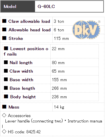 - Ngoài cung cấp kích móc thủy lực Eagle G-60LC và các sản phẩm tiêu chuẩn luôn có sẵn, chúng tôi còn cung cấp các kích móc thủy lực chất lượng cao của Jung | Germany, Osaka Jack | Japan, Masada | Japan và hàng giá rẻ hơn của Tonners | Korea, China để thỏa mãn sự lựa chọn thêm của khách hàng, phù hợp với tiêu chí của khách hàng đặt ra (tham khảo tại: www.osaka-jack.com.vn và www.dkv-hydraulic.com).