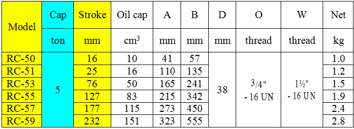 KÍCH THỦY LỰC RC-59 | CON ĐỘI THỦY LỰC RC-59 | SINGLE ACTING HYDRAULIC JACK RC-59 | 5 tấn | 232 mm
