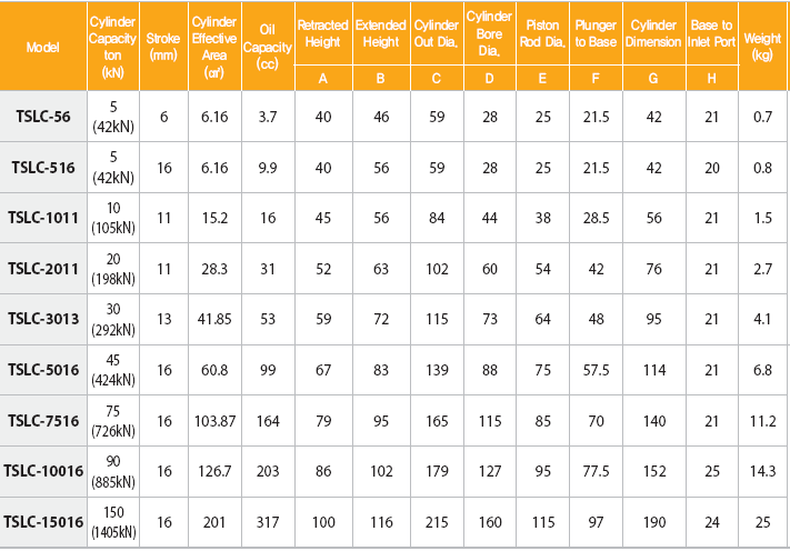 KÍCH THỦY LỰC TECPOS TSLC-5016 | CON ĐỘI THỦY LỰC MỎNG TECPOS TSLC-5016 | TECPOS LOW HYDRAULIC JACK TSLC-5016 | 50 tấn | 16 mm