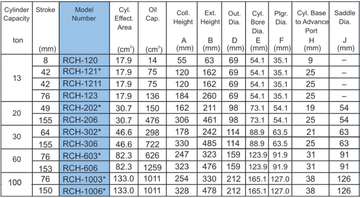 - Áp hoạt động kích thủy lực rỗng tâm RCH-1211 < 700 bar, với coupler tiêu chuẩn 3/8"-NPT cho phép kích thủy lực rỗng tâm RCH-1211 đấu nối nhanh với bơm thủy lực, thông qua ống dây, phụ kiện thủy lực.