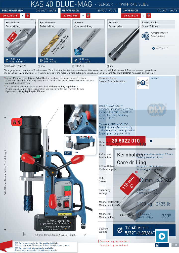 - Máy khoan từ Karnasch KAS 40 SILVER-MAG được sản xuất tại Karnasch Professional Tools GmbH - Heddesheim - Đức. Made in Germany.