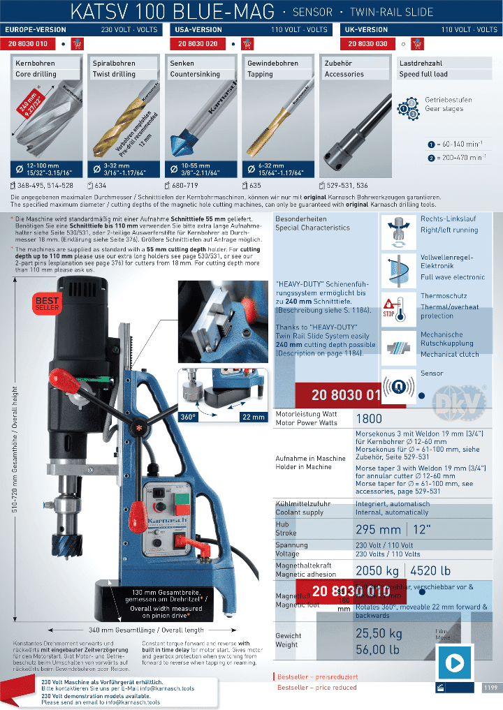 - Máy khoan từ Karnasch KATSV 100 SILVER-MAG được sản xuất tại Karnasch Professional Tools GmbH - Heddesheim - Đức. Made in Germany.