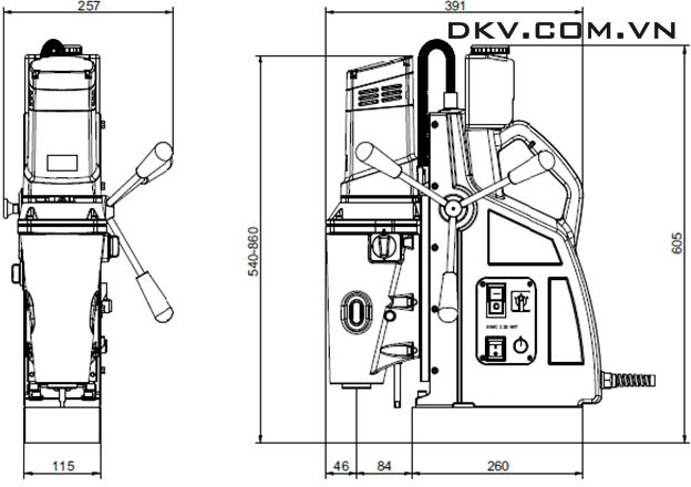 - Máy khoan từ Schifler SWC 120 WT có lực kẹp đế từ 20.000 N, với tiết diện đế từ (dài x rộng): 220 x 110 mm, cho phép kẹp cứng, cố định, cứng vững trong quá trình thao tác khoan.